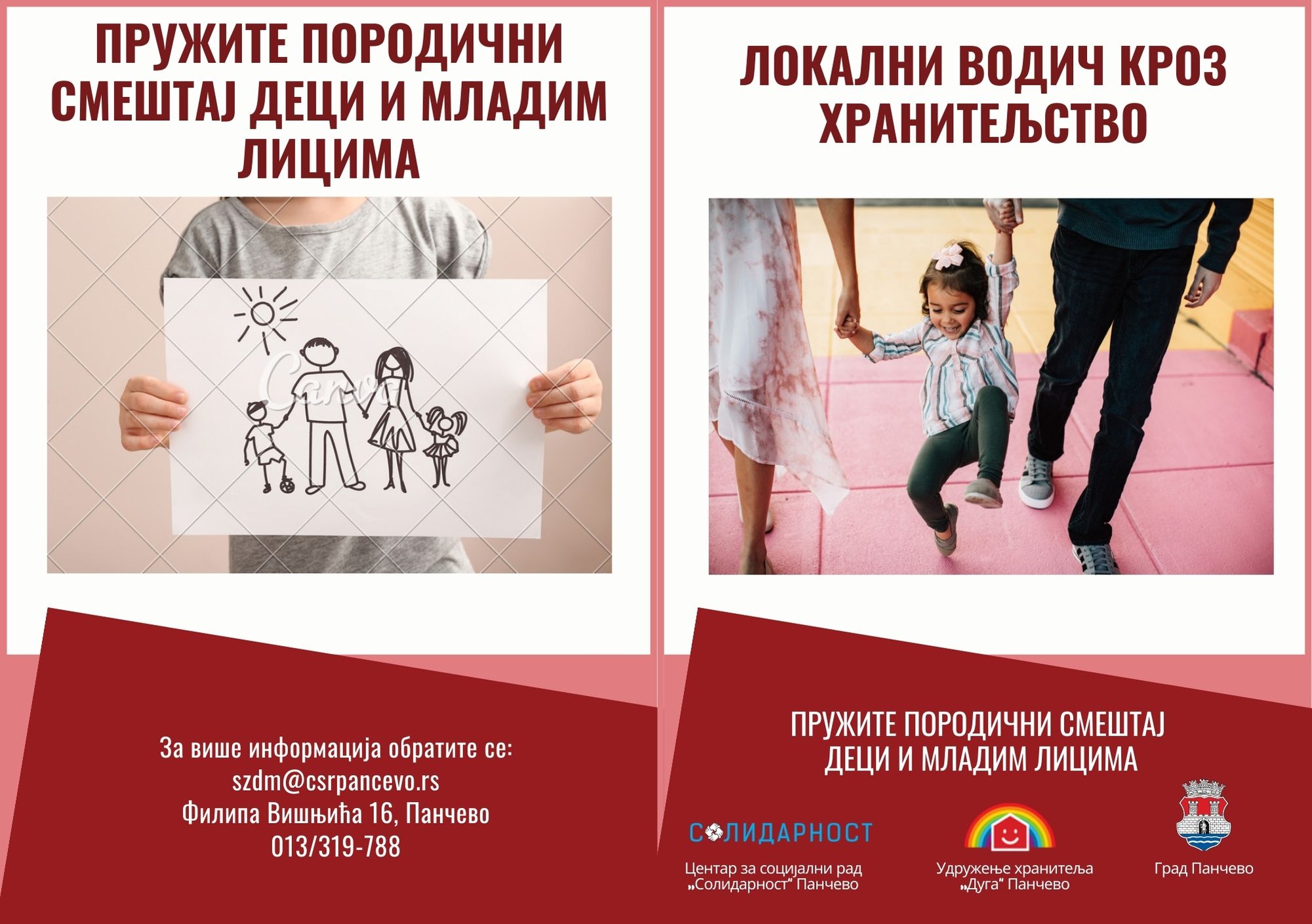 Удружење хранитеља ДУГА и партнерска организација Центра за социјални рад "Солидарност" Панчево реализовали су пројекат "Локални водич за хранитељство", а који је под покровитељством града Панчева, а чији је циљ да се путем информативних и промотивних материјала (у виду плаката и флајера) повећа број хранитељских породица на територији града Панчева и да се грађанство информише о инстититу породичног смештаја.