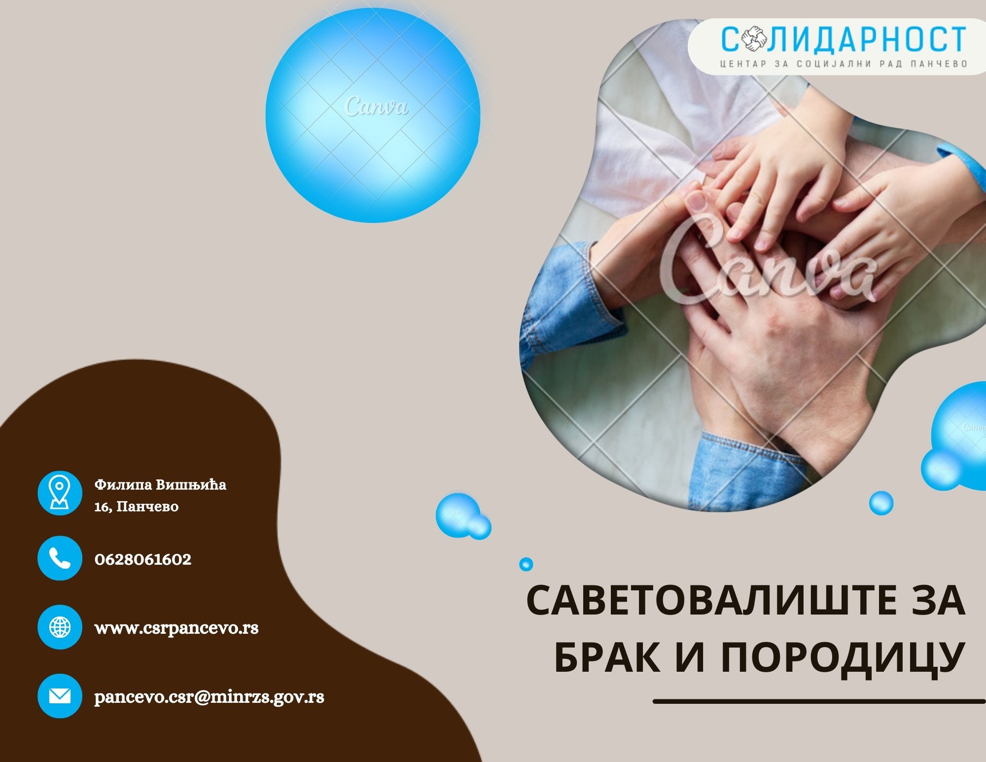 Центра за социјални рад "Солидарност" Панчево је носилац пројекта "Саветовалиште за брак и породицу", а који је по покровитељством града Панчева, а чији је циљ да се путем саветовања помогне члановима породице да преброде породичну кризу (подељено родитељством резводи, насиље у породице).