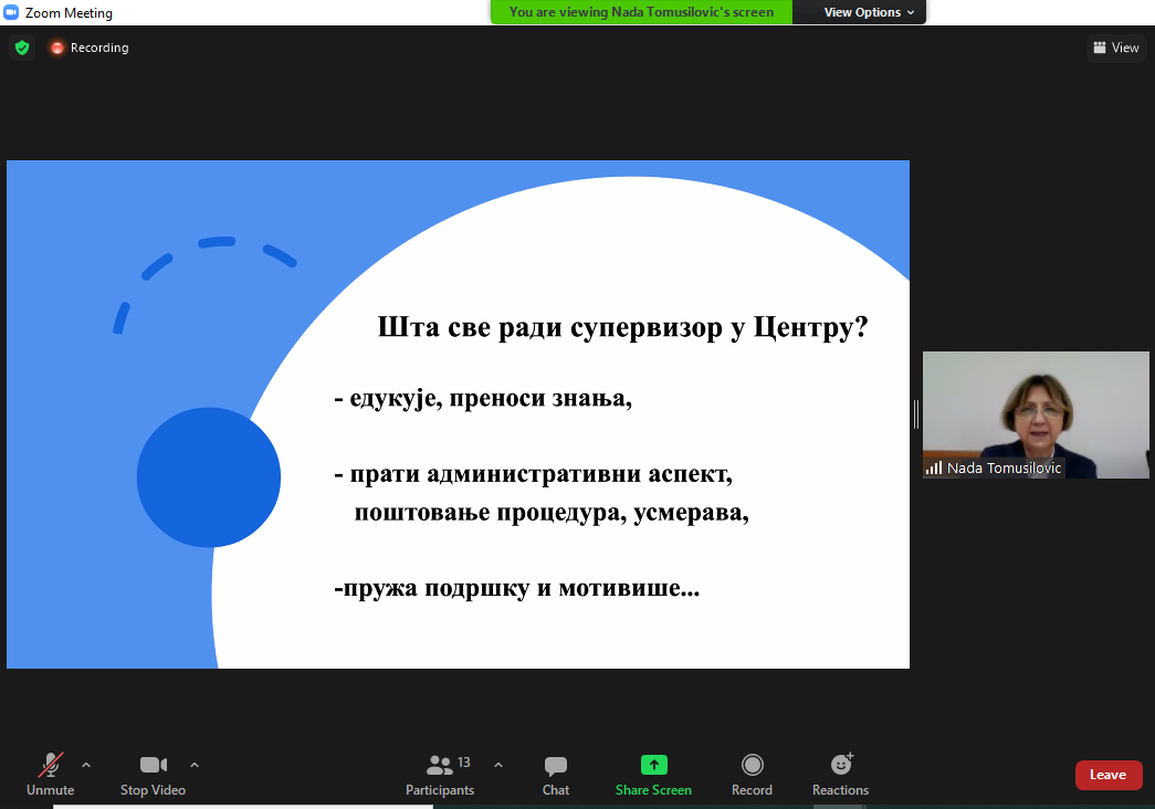 Први on-line скуп супервизора Јужног Баната организован је од стране супервизора Центра за социјални рад „Солидарност“ Панчево дана 02.06.2021. године. Одлуком Коморе социјалне заштите скуп је категорисан као округли сто под називом „И супервизор је само човек“. Округлом столу су присуствовале саветнице Покрајинског завода за социјалну заштиту, супервизори из Центра Пландиште, Алибунара, Беле Цркве, Опова, Ковачице, Панчева, Ковина и Вршца. Разговарало се о функционисању центара за социјални рад током пандемије и посебно о улози супервизора у поштовању стандарда и прописане процедуре у раду са корисницима.